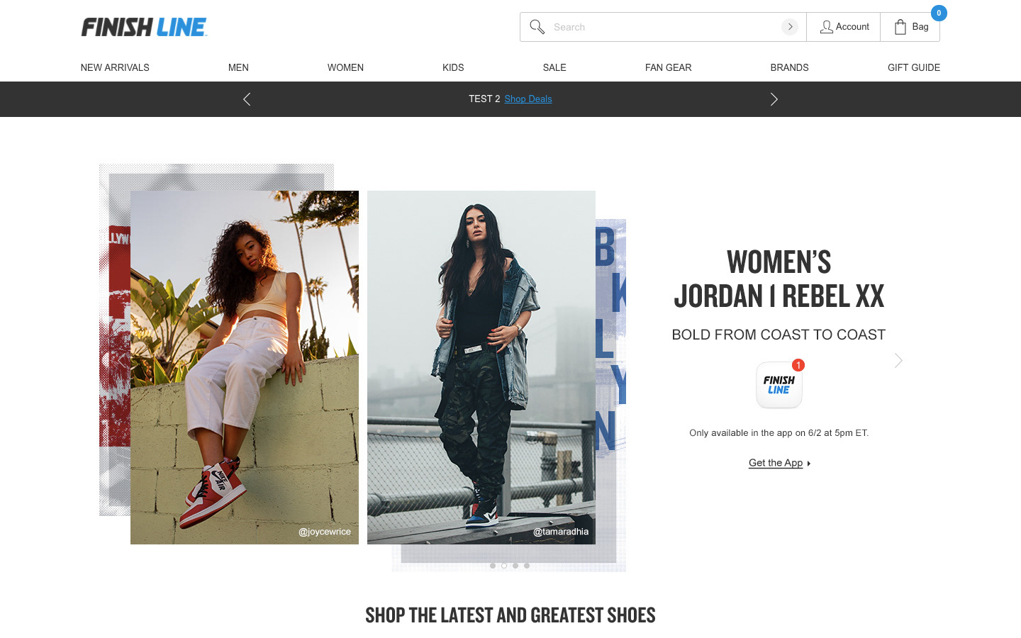 Assets: Site graphics + email promoting Jordan Rebel Objective: Promote dual coast in-store activations + Finish Line App through digital assets