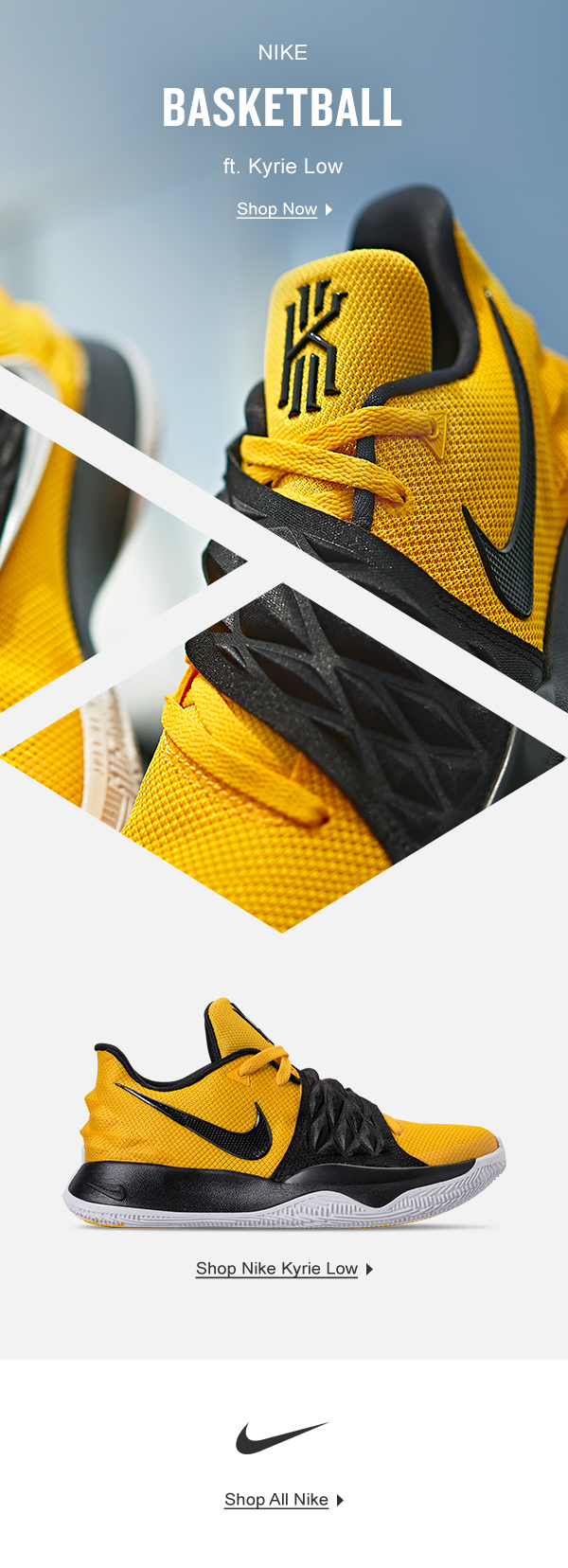 Assets: Site graphics + email promoting Kyrie 4 Objective: Engage viewer through design cues that draft from diamond pattern in footwear